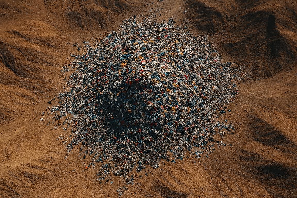 Er zeigt uns, dass Mode längst mehr ist als Ausdruck von Stil – sie ist zum Symbol für Überproduktion, für den schnellen Kick des Konsums und für die Kurzlebigkeit unserer Entscheidungen geworden. Jeder Stoffberg erzählt von Kollektionen, die nie getragen wurden, von Trends, die schon nach wenigen Wochen veraltet waren, und von einer Industrie, die den Wert von Kleidung auf den Preiszettel reduziert hat.